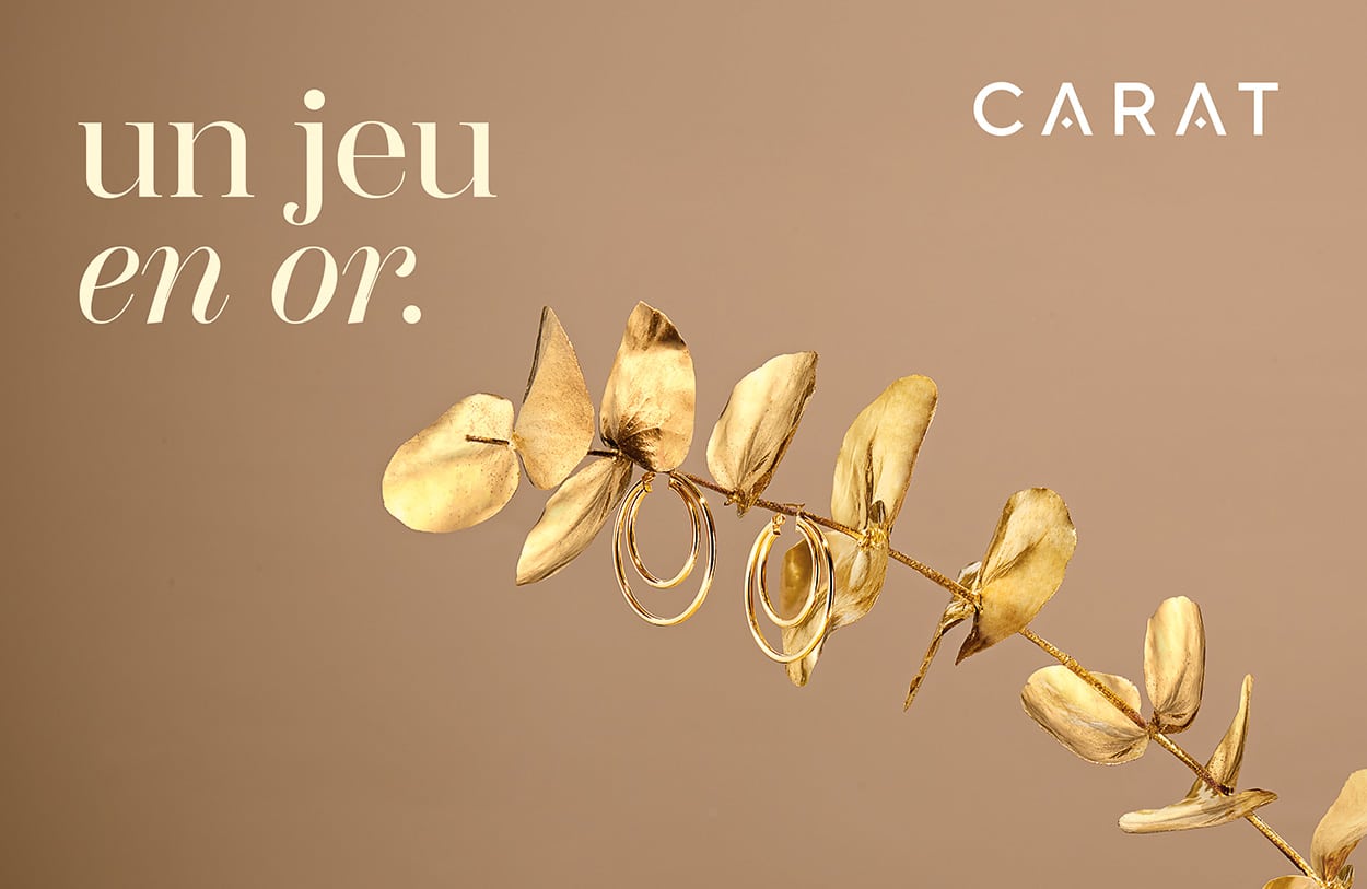 Les feuilles d’or s’invitent chez Carat ! Trouvez les feuilles cachées sur notre boutique et gagnez jusqu’à -20% sur nos bijoux en or.
