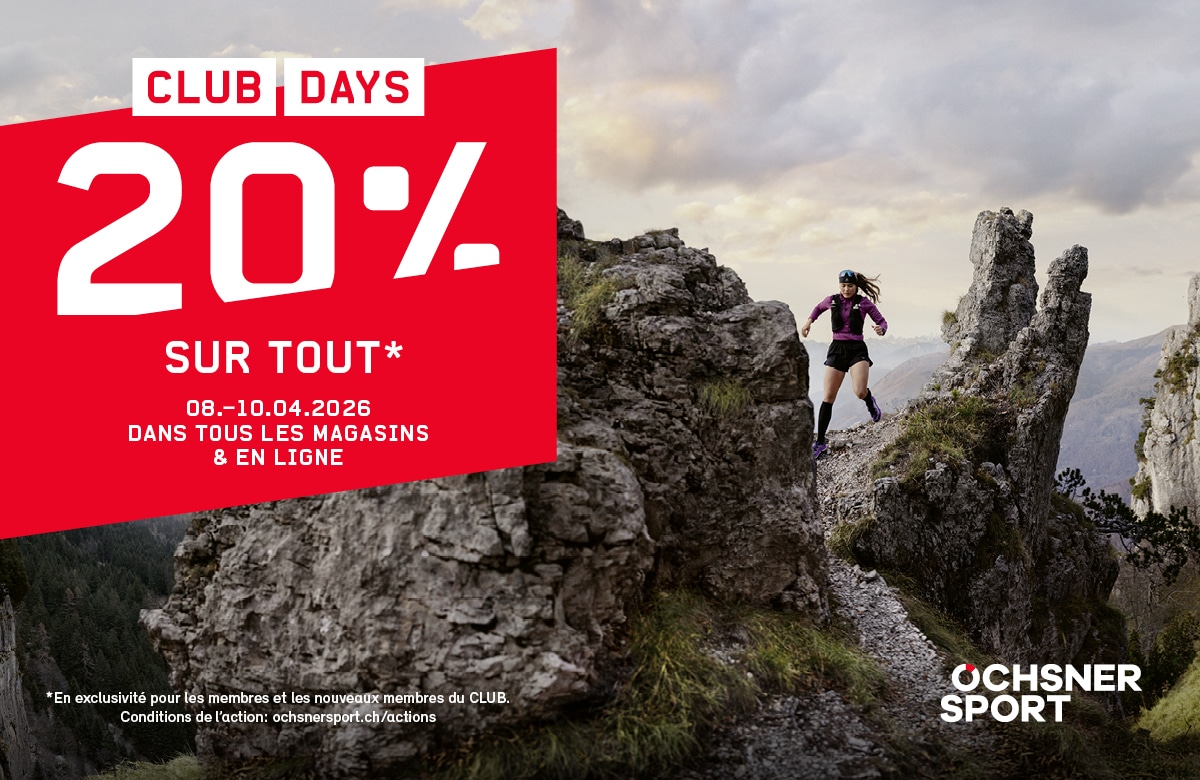 Du 8 au 10 avril 2026 CLUB DAYS : 20% SUR TOUT *En exclusivité pour les membres et les nouveaux membres du CLUB. Conditions de l’action: ochsnersport.ch/actions Promotions en cours Etam | Promo collants Découvrez les offres illimitées d'Etam Rituals | NOUVEAUX PARFUMS DE COLLECTION PRIVÉE | Rituals | NOUVEAUX COFFRETS CADEAUX | OCHSNER SPORT | CLUB PRICE | PROMOD | Nouvelle collection | Migros Restaurant – Offre PKZ MEN |Soldes| 5àsec – rabais ski OCHSNER SPORT | CLUB DAYS |